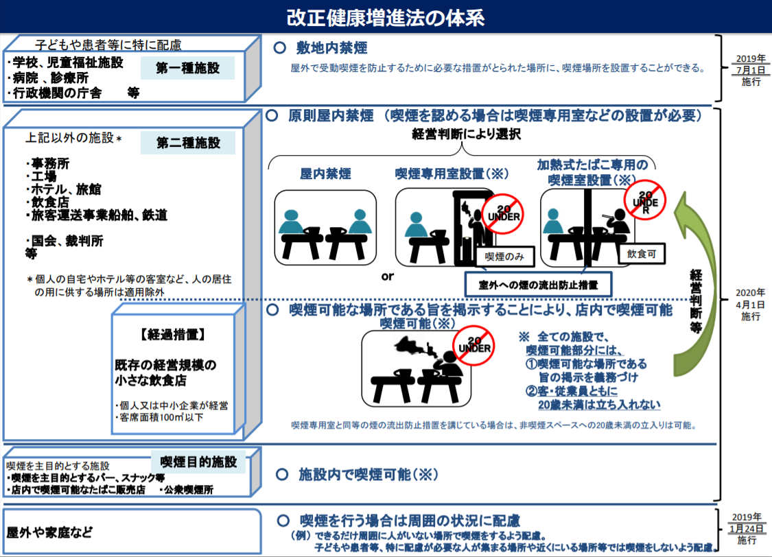 参考:厚生労働省「受動喫煙対策」、愛知県「受動喫煙防止対策」